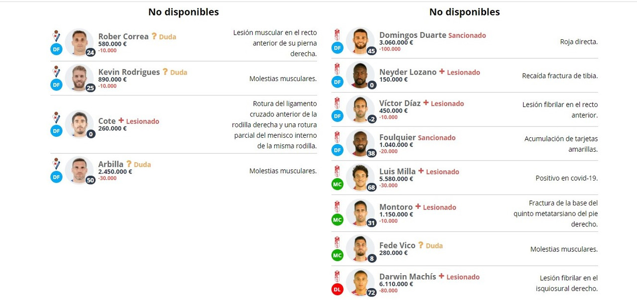 Esta semana iniciamos el recuento: no puede jugar Domingos, dice uno; tampoco Foulquier, otro; ni Machís, el tercero; el siguiente exhibe con entusiasmo un extenso parte médico de otros jugadores. Milla es baja por covid ( no sé si contagiado , seguro que asintomático, o es contacto directo).Tienes alguna duda de la reacción que nos provocaría enterarnos que en la situación de Milla están otros diez?